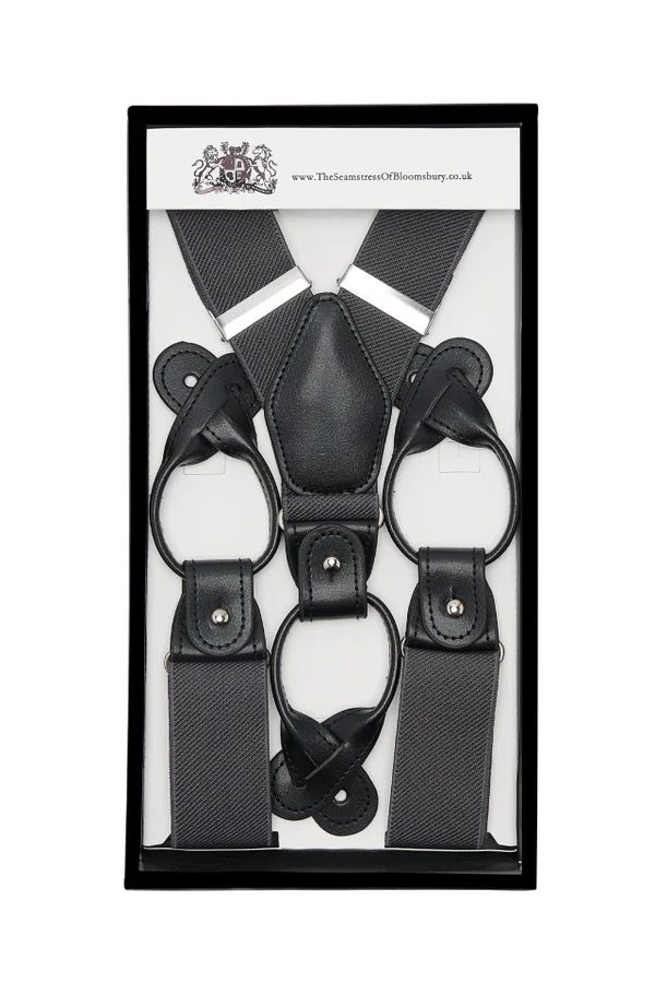 Bukseseler til herrer fra “Seamstress from Bloomsburys” fra 1940/50-tallet kan festes med knapper i linningen. For å gi et perfekt siste touch til et antrekk.