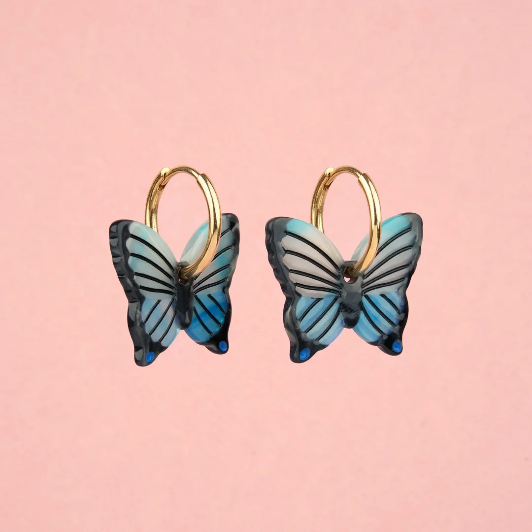 Nydelige blå sommerfugl øredobber fra Coucou Suzette!