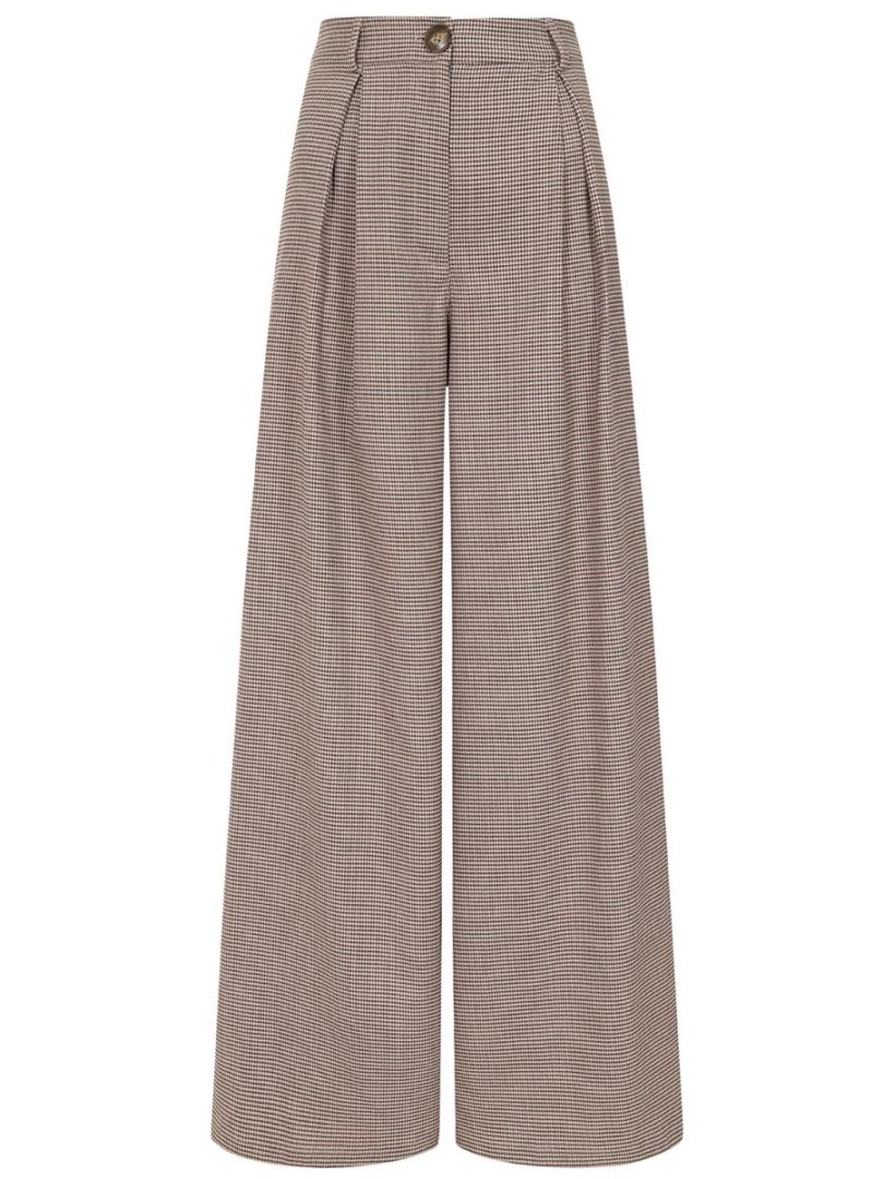 Brown Eliza Houndstooth Trousers – 40s Style Wide Leg Pants