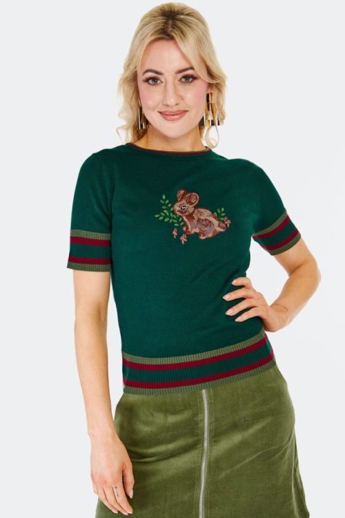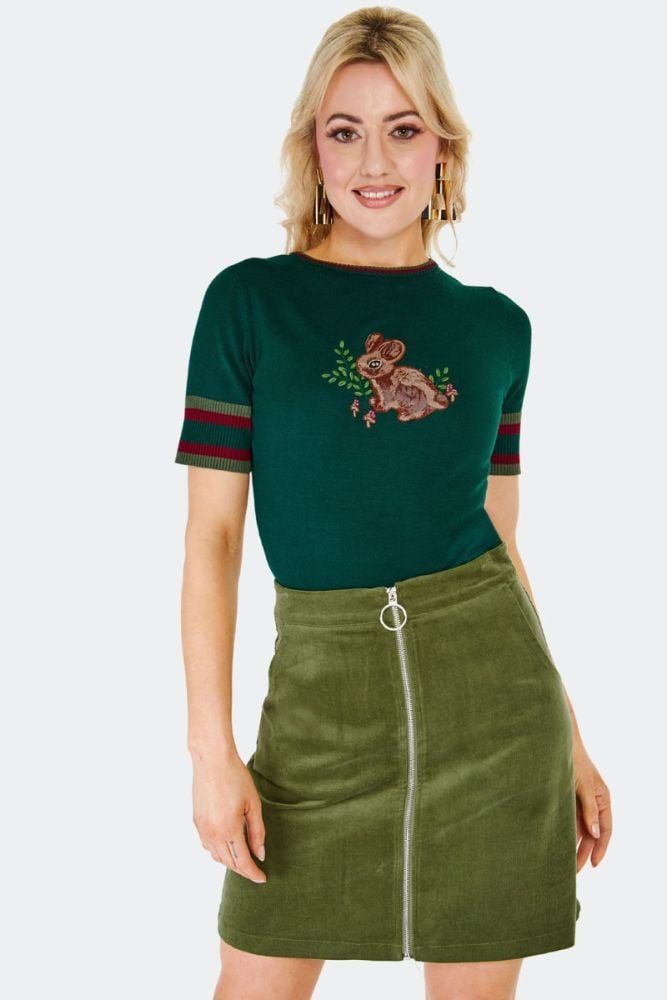 Grønt cordfløyelskjørt fra Voodoo Vixen med glidelås hele veien ned.