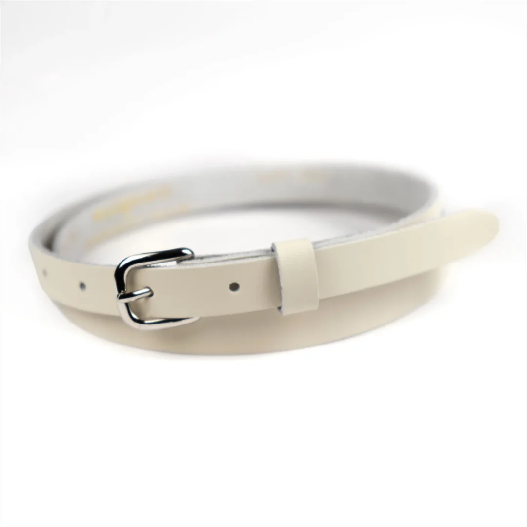 Enkelt smalt skinnbelte med justerbar metallspenne, superbra til bukser eller som et dekorativt belte på kjolen.