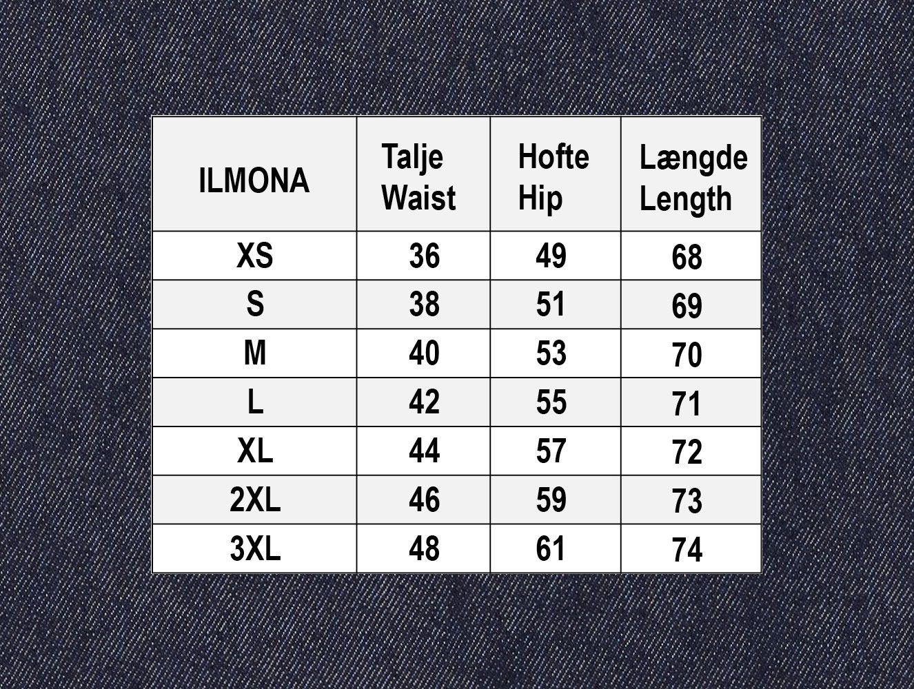Materialet er: 48 % bomull, 48 % polyester og 4 % elastan.