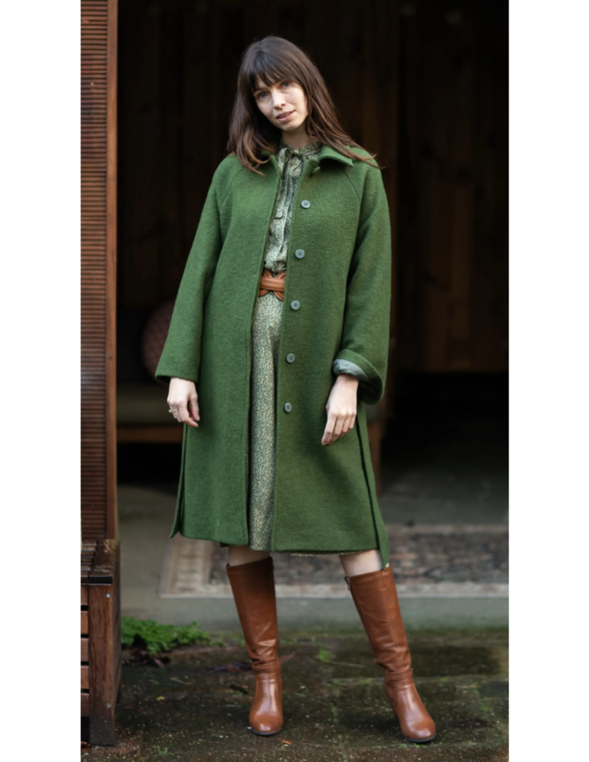 Very Cherry – Isia Coat Fern Green Boiled Wool
