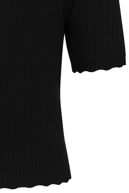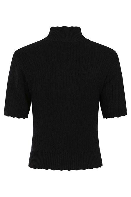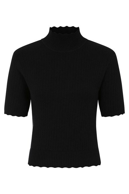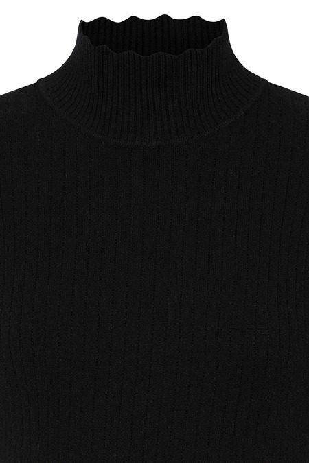 Myk og retroinspirert strikkegenser med høy hals og søte bølgekant‑detaljer fra Banned Retro