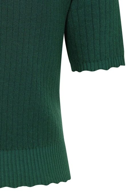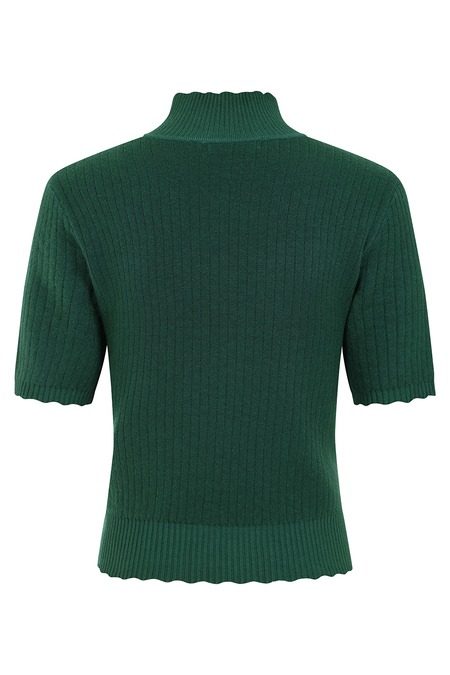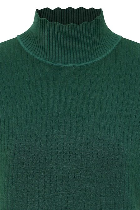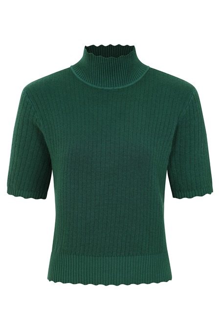 Myk og retroinspirert strikkegenser med høy hals og søte bølgekant‑detaljer fra Banned Retro