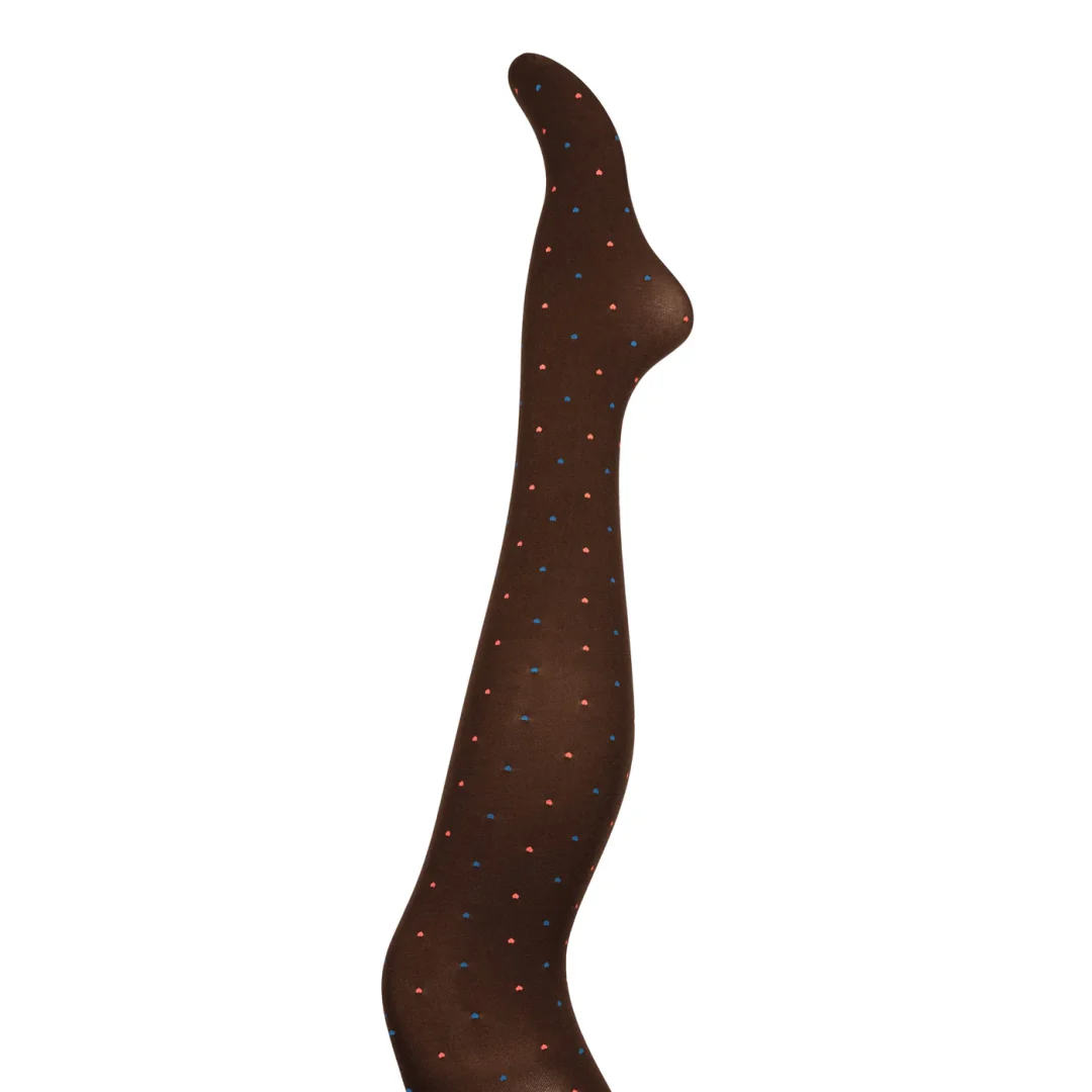 Nydelig brune strømpebukser med røde og blå hjerter fra Margot