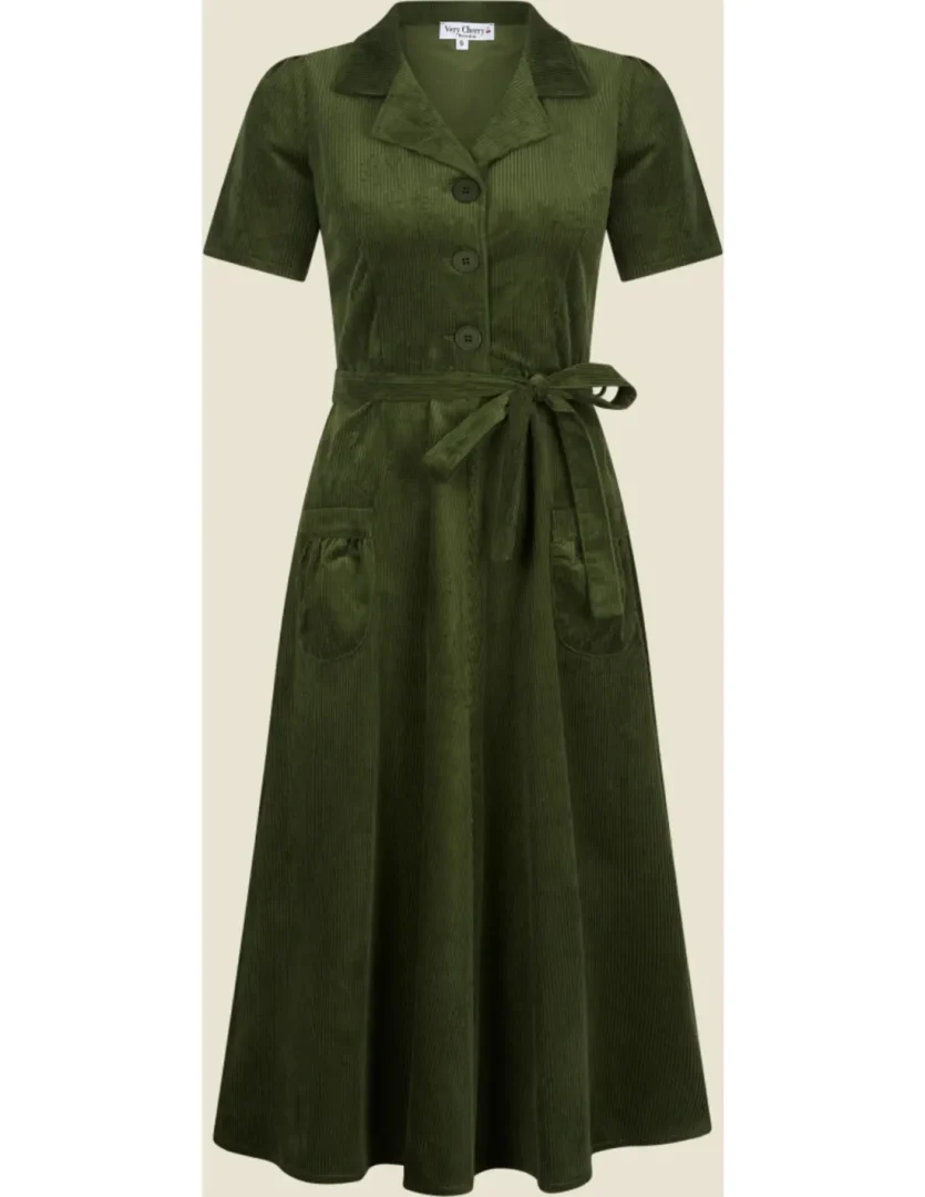 Nydelig grønn cordfløyelskjole fra Very Cherry