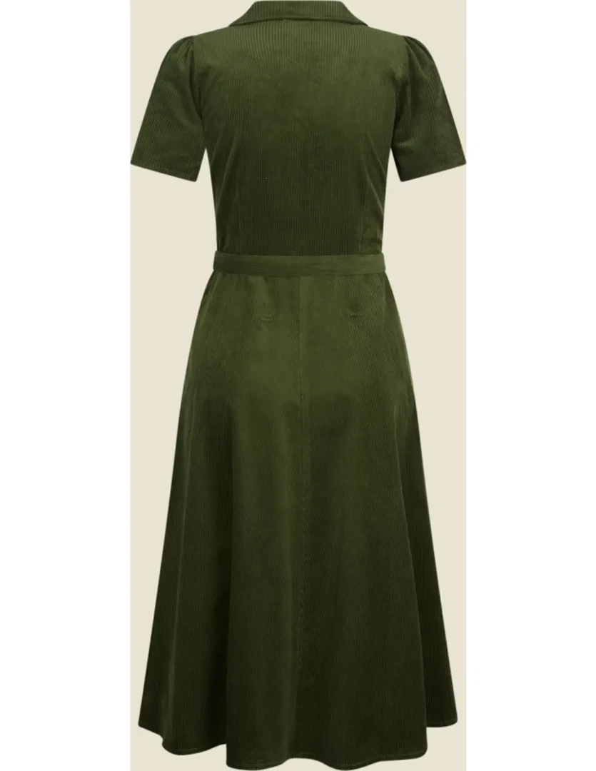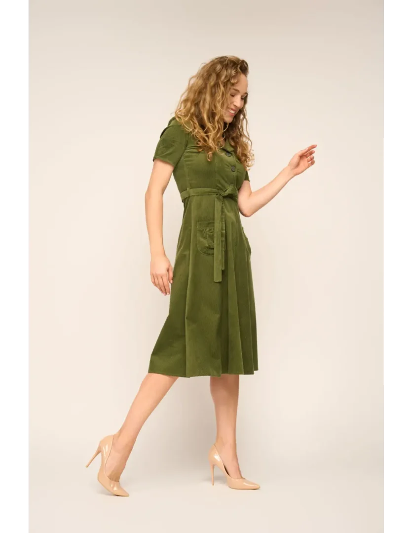 Revers Dress Midi Corduroy Green