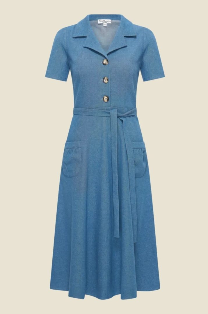 Revers Dress Midi Light Denim
