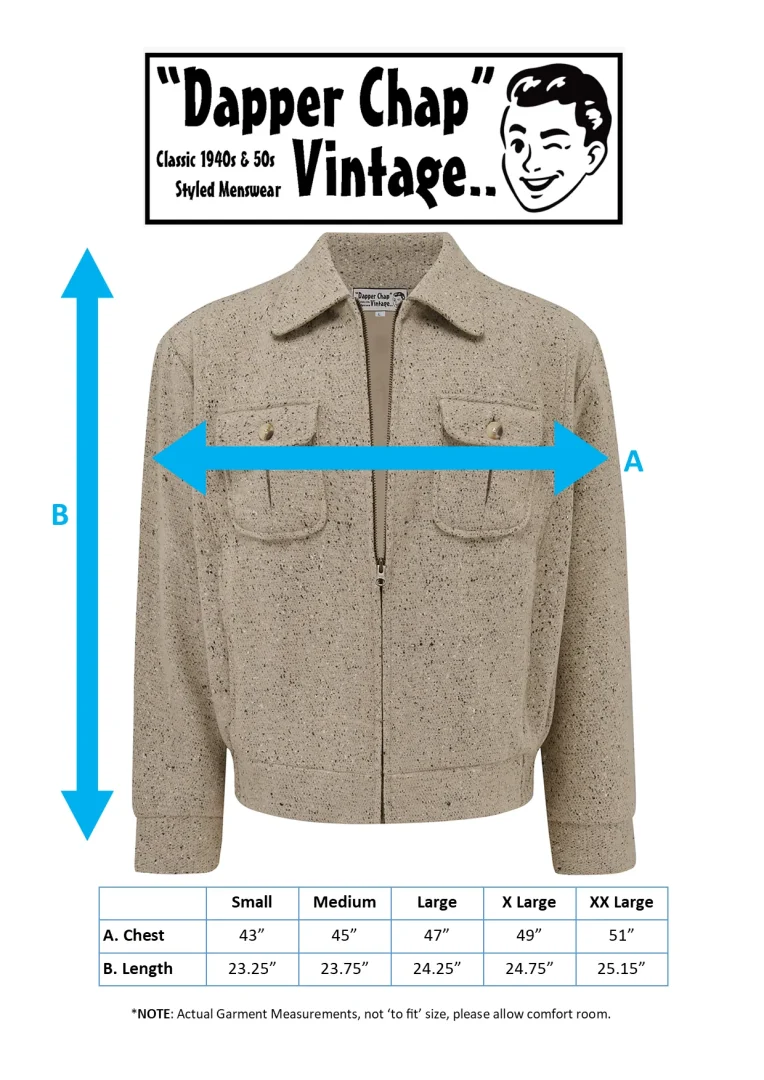 Alle “cool cats” har en Ricky-jakke. Bruk den med dine favorittjeans og en hvit t-skjorte, eller pynt den opp med et par pegs og en spydspissskjorte. Med en elastisk midje som sitter perfekt på beltelinjen, vil «Ricky-jakken» gi deg et hint av vintage/rockabilly-look. Basert på den klassiske stilen til en autentisk vintage Gab/Gabardine Weekender-jakke som var en populær, avslappet stil fra slutten av 1940-tallet og helt frem til 1950-tallet.
