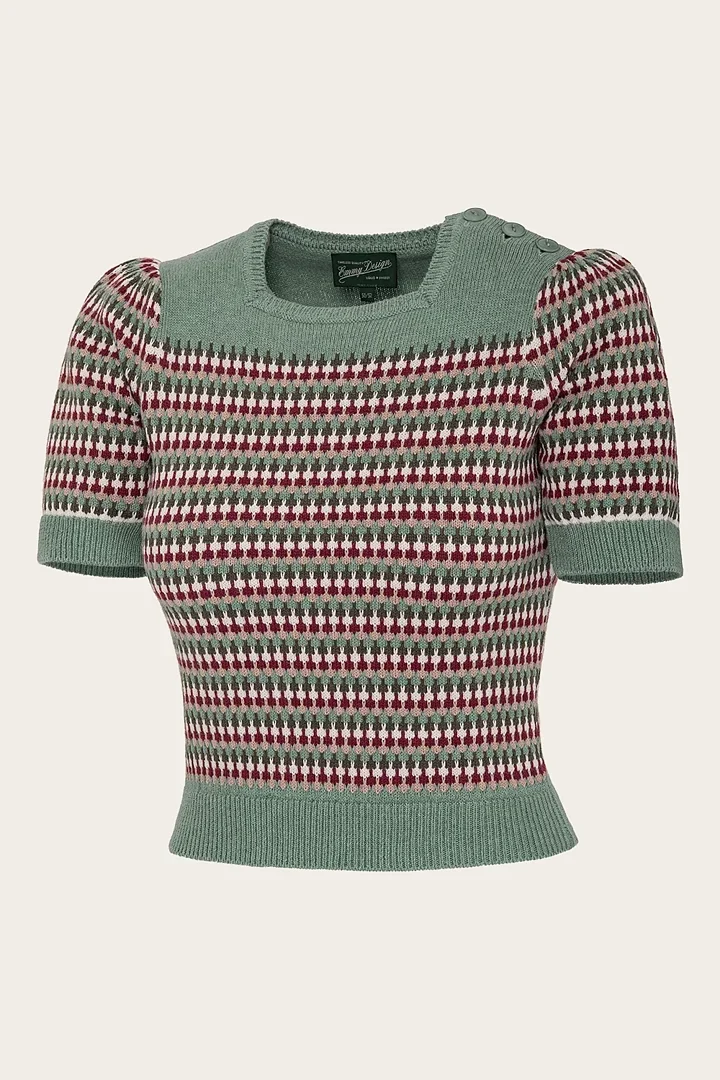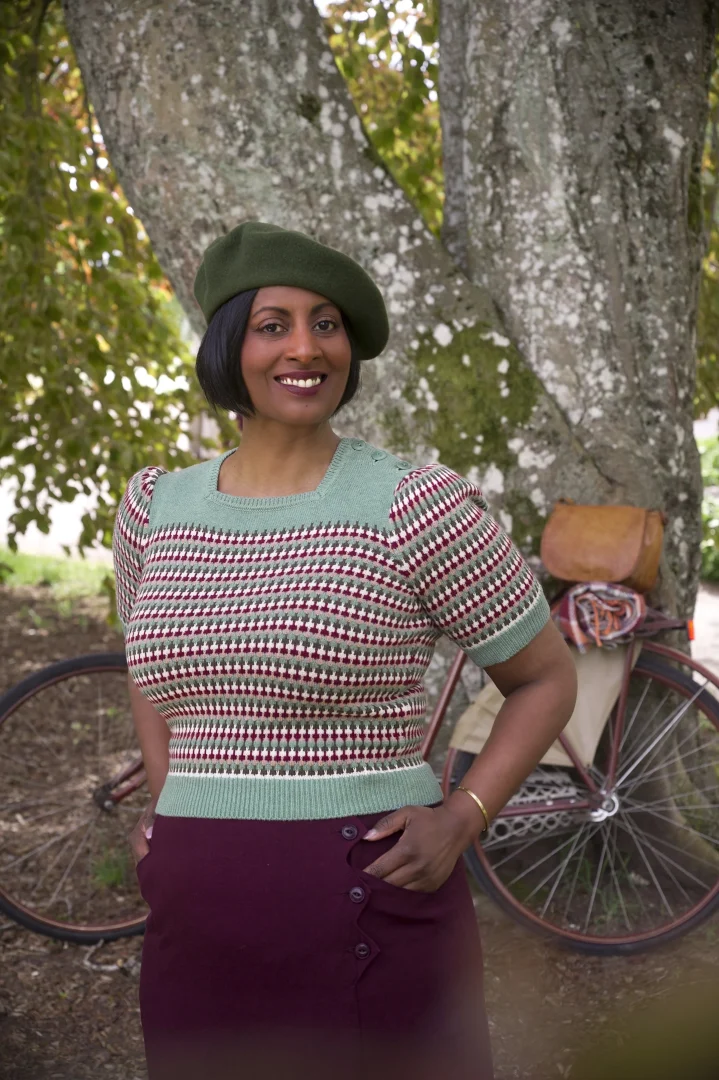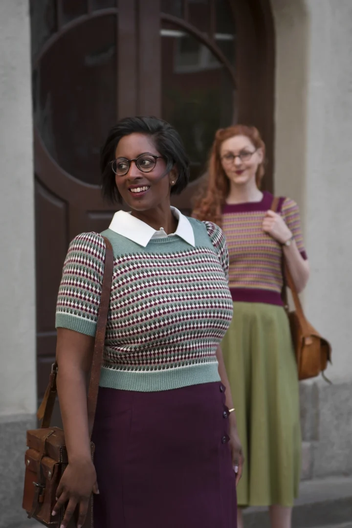 Har du sett Scarlett Johansson i JoJo Rabbit? Da kan denne strikketoppen virke veldig kjent! En strikketopp inspirert av 1930- og 40-tallsmodellen i en ny blanding av bomull og kasjmir