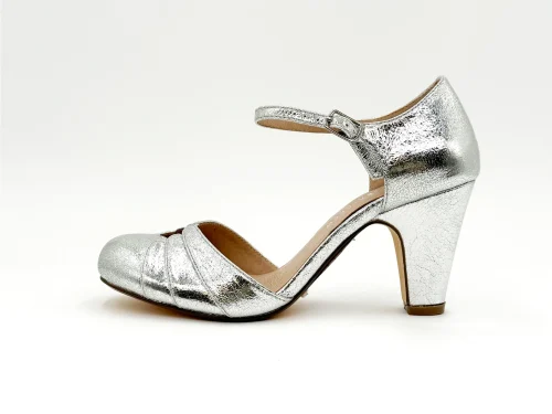 Retro Maryjane Metallic Crinkle Pump Silver