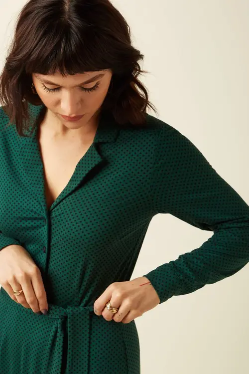 Pretty 40s Shirt Dress – Green Polka